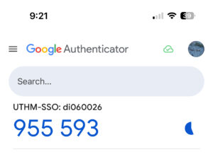 7. You will now see a new account has been added to the app. The 6 digit code will be show under “UTHM-SSO“.