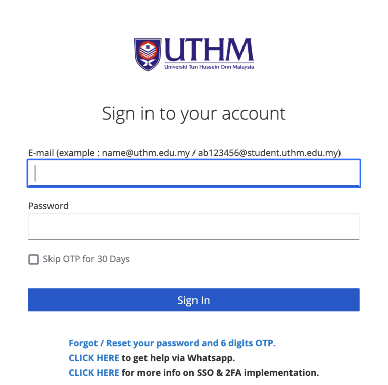 1. Click here -> https://uthmid.uthm.edu.my to view the list of all systems in UTHM with “SSO Ready” status. Click on the system you would like to use to proceed with login.